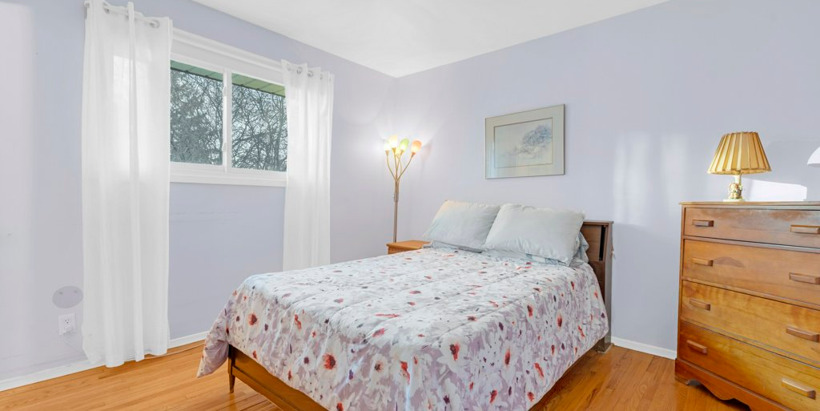The natural light beautifully illuminates the primary bedroom complemented with a 2-pc ensuite and hardwood floors. Additional den/office, bedroom and 4-pc compliment the main level.
